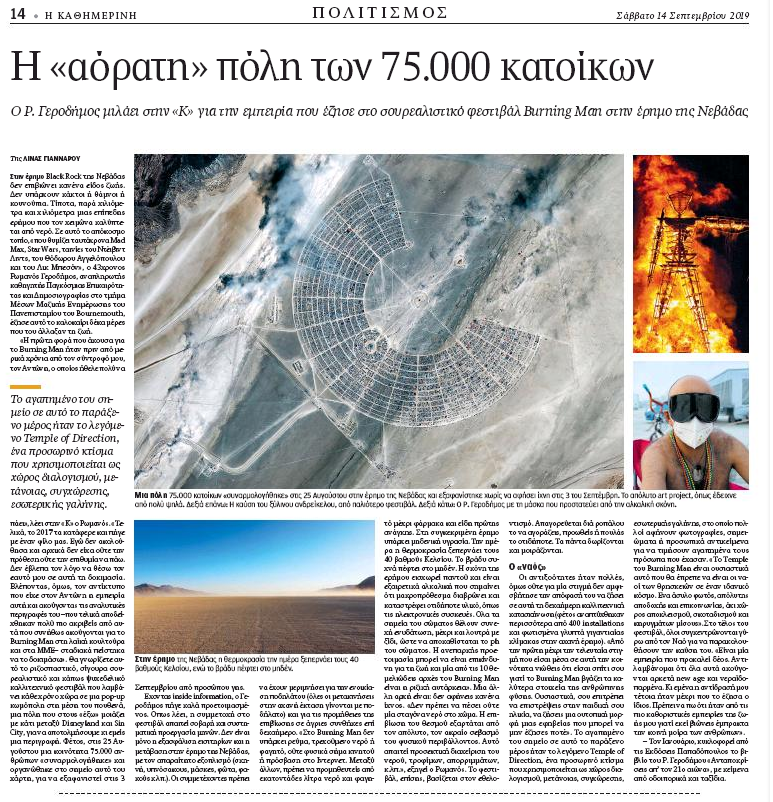190914 Kathimerini – Sunentefksh gia Burning Man